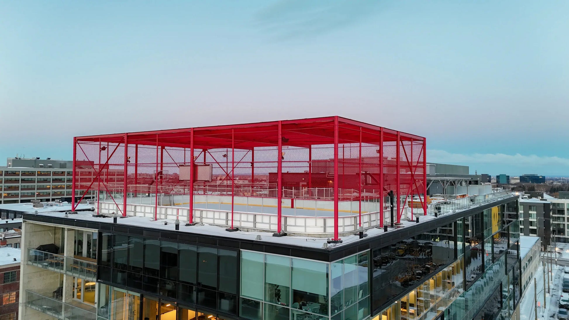 Découvrez un terrain multisport accueillant où vous pouvez vous adonner à une foule d’activités comme le basketball, le soccer ou encore le hockey-balle, tout en admirant une vue à couper le souffle sur Montréal.